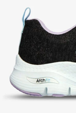 Skechers Sport Women’s Arch Fit Comfy Wave Black/Lavender Trim Athletic Lace Up Nursing Shoes