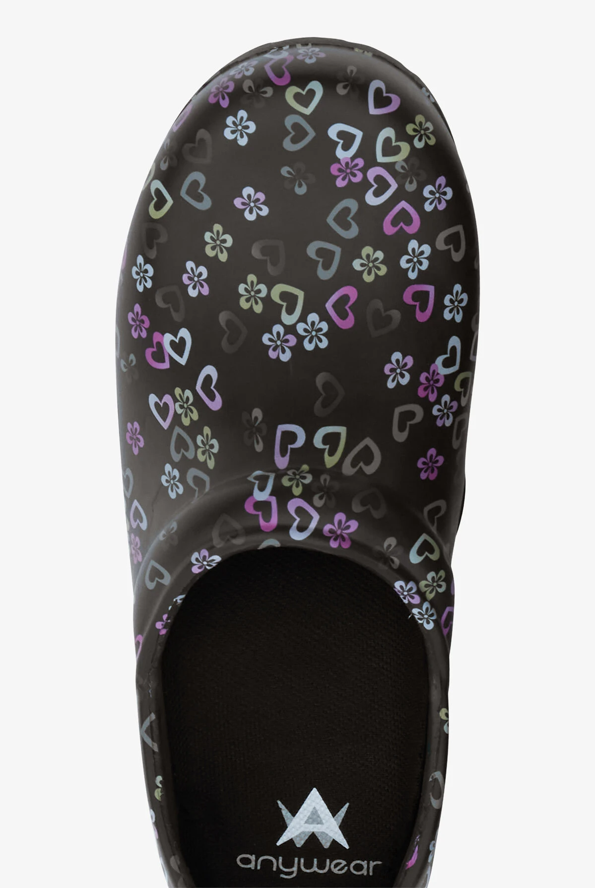 Carefree comfort! Anywear SR Angel Lucky in Love Clogs are made of high-rebound, molded EVA from upper to midsole for flexible cushioning. There’s a removable memory foam insole treated with Certainty® antimicrobial for freshness. The rubber outsole is slip resistant. All in a pretty hearts-and-flowers print.