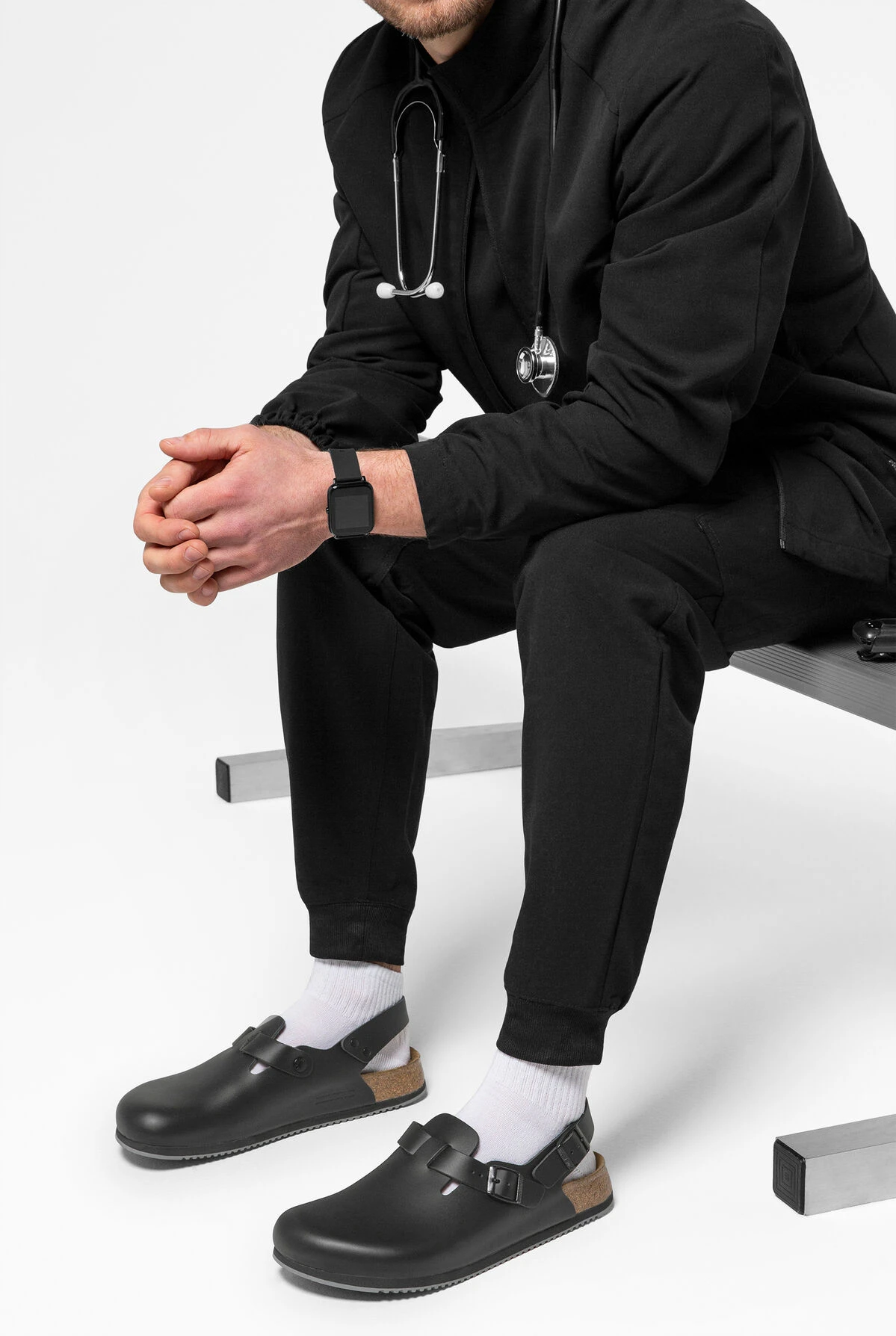 Since 1774 Birkenstock has provided top quality shoes, now available for the working professionals. Our Tokyo Super Grip Clogs have the classic Birkenstock styling with a adjustable strap, roomy toe box ,and have their original contoured footbed with deep heel cup, longitudinal and transverse arch support, and raised toe bar; all totaling up to support and comfort, perfect for your long shift hours.