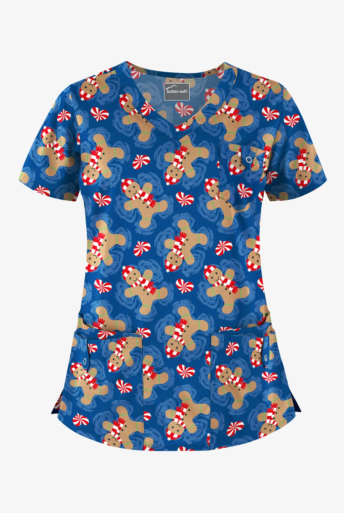 Need a little fun in your workday fashion? Our women’s scrub top features snap-closure pockets that are as cute as they are convenient. Mmm … Christmas cookies. This print makes us hungry in the most festive way.
