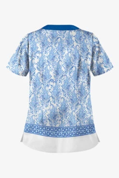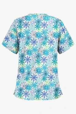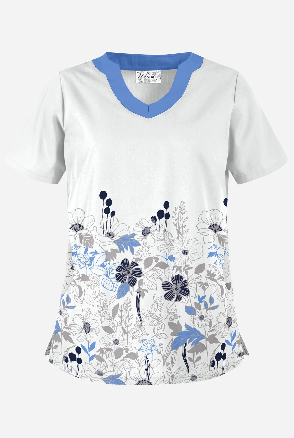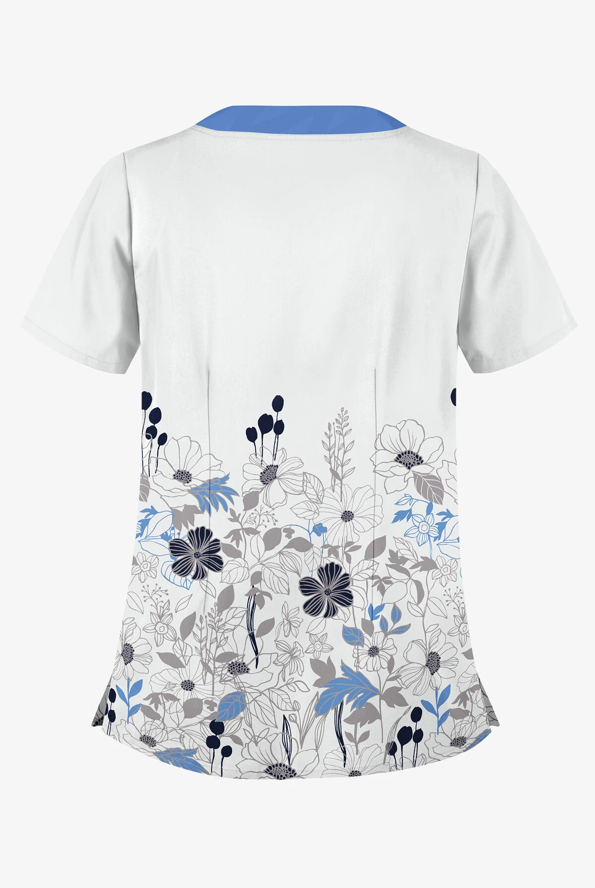 Butter-Soft Floral Field White Printed Women’s 2-Pocket Scallop Neck Scrub Top
