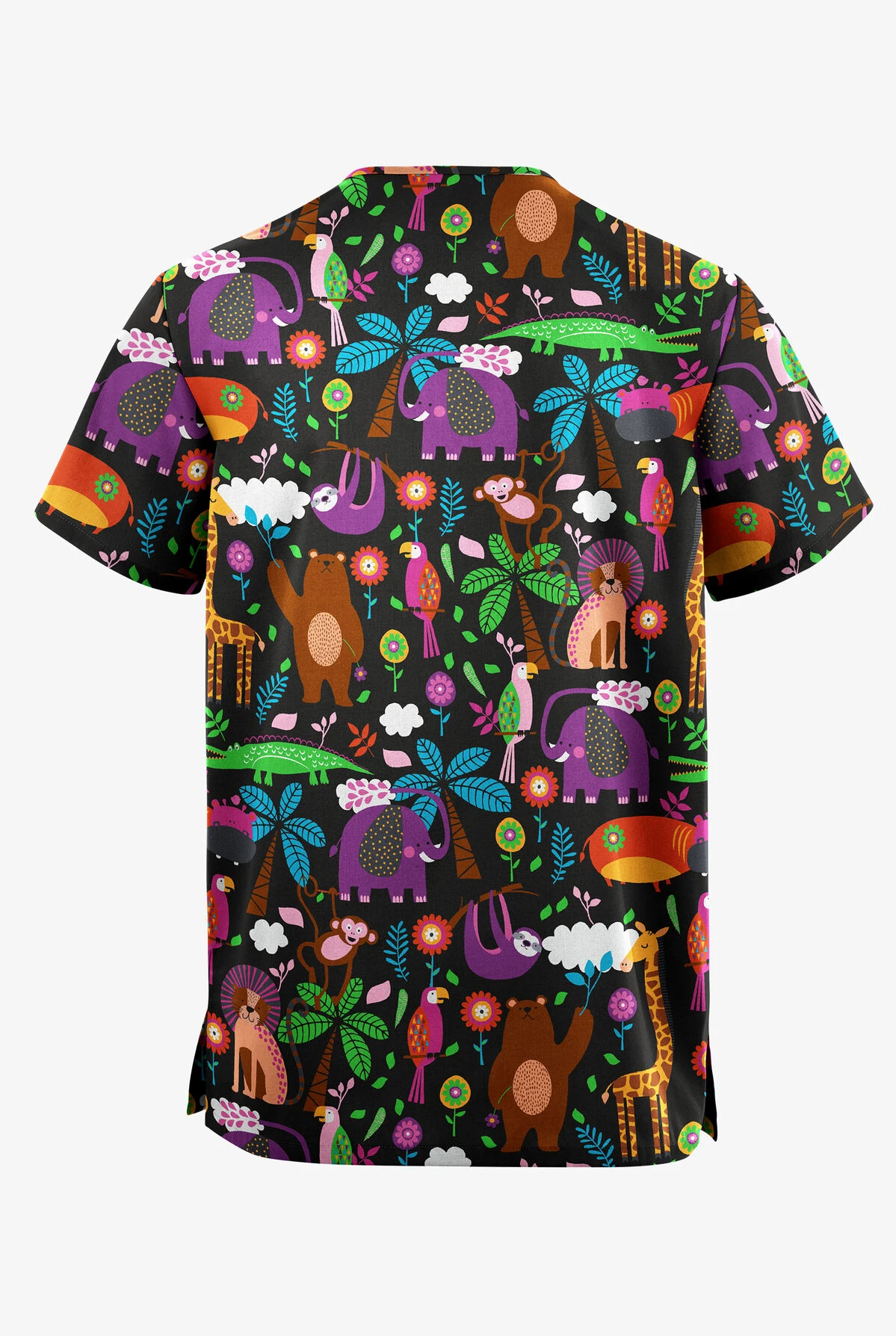 Butter-Soft Originals Jungle Party Unisex 2-Pocket V-Neck Printed Scrub Top