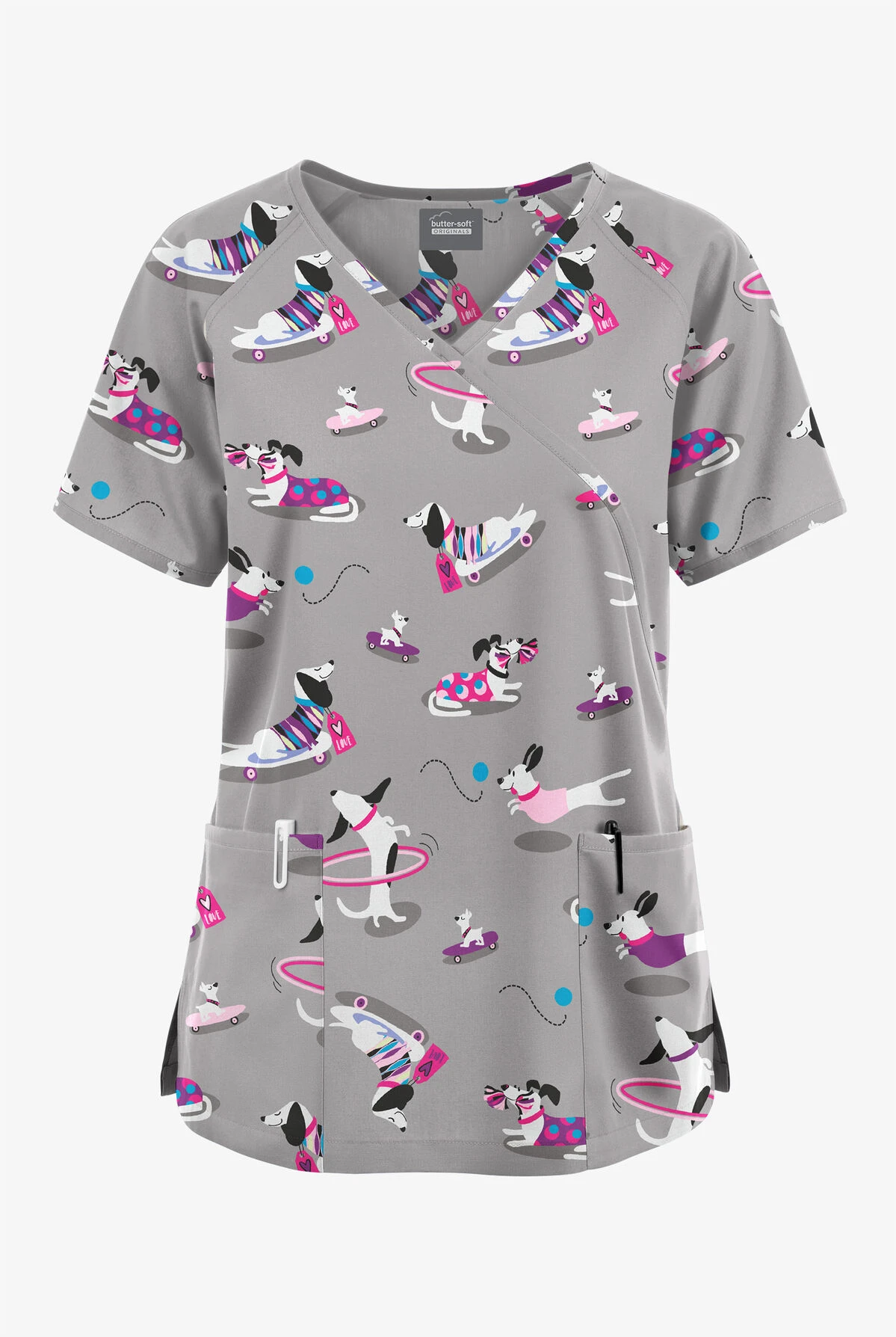 Featuring a worry-free mock wrap style (sewn shut!), our new scrub top offers a flattering fit with an adjustable tie at the back. Side vents keep it comfy around the hips, and patch pockets are there for the essentials.