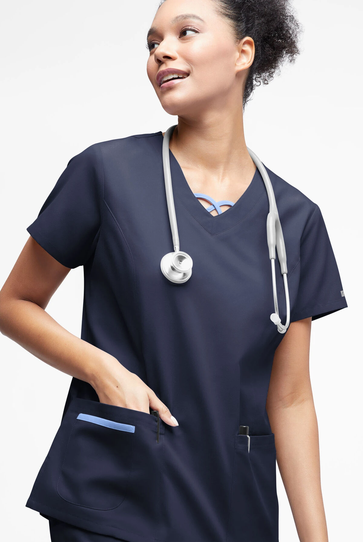 Butter-Soft Originals Women’s 3-Pocket Crisscross Contrast V-Neck Scrub Top