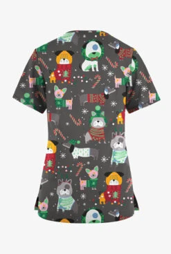 Butter-Soft Originals Cuddly Pups Pewter Women’s 7-Pocket Rounded V-Neck Printed Scrub Top