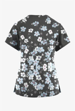 Butter-Soft Originals Boho Floral Pewter Women’s 2-Pocket Scallop Neck Printed Scrub Top