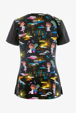 Cherokee Tooniforms Cuddles Cure All Doc McStuffins Women’s 3-Pocket STRETCH V-Neck Print Scrub Top
