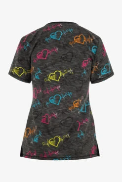 Cherokee Infinity Pop Beats EKG Hearts Women’s 3-Pocket STRETCH V-Neck Print Scrub Top