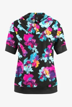 Easy STRETCH By Butter-Soft™ Sweet Blossoms Women’s 3-Pocket Short Sleeve Pull-Over Scrub Hoodie