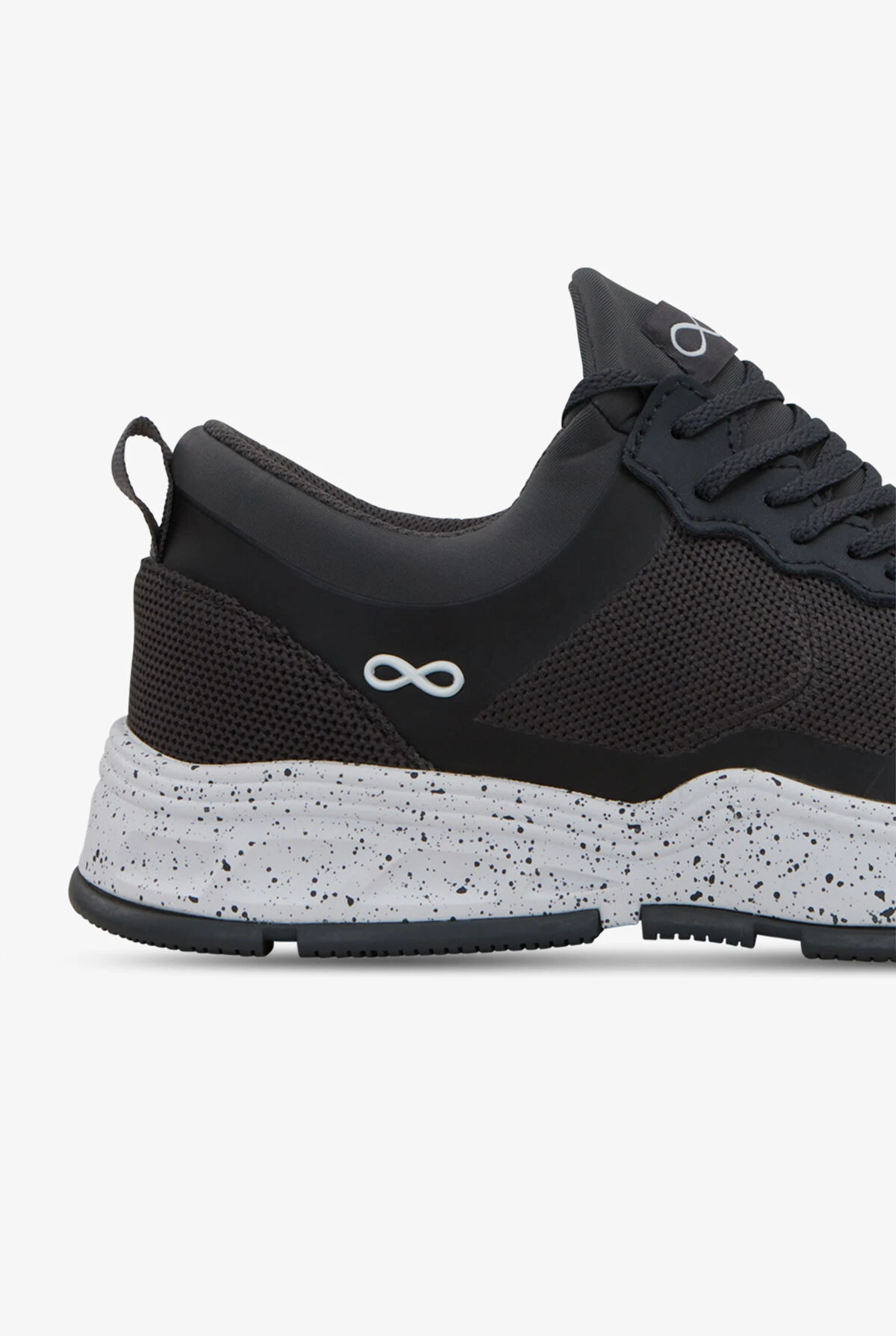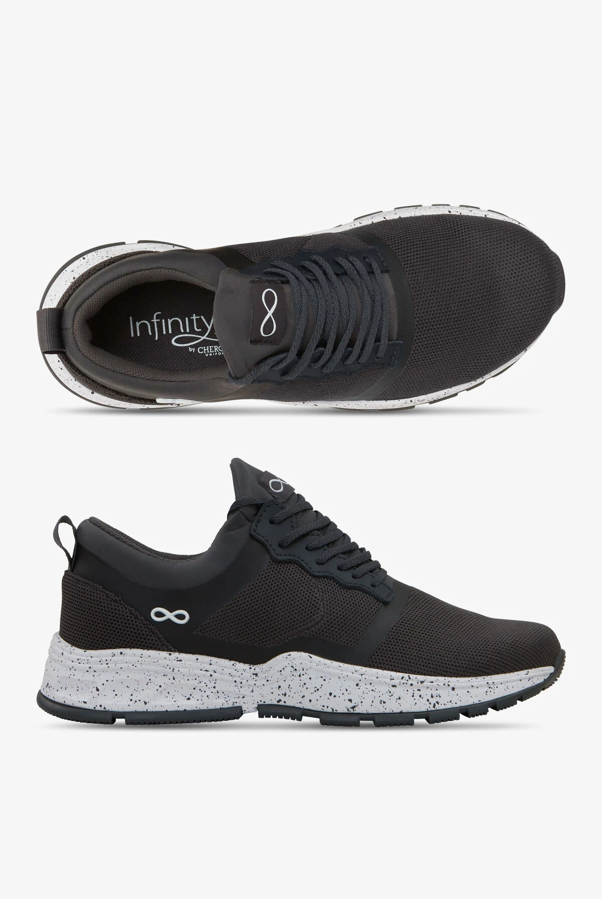 Infinity by Cherokee Fly Pewter Flecked Athletic Lace Up Shoes feature breathable mesh uppers with adjustable laces. A removable, multi-layered insole and EVA midsole cushion and support. Slip- and oil-resistant outsole has strategically-placed flex grooves. In pewter with a cool flecked midsole.