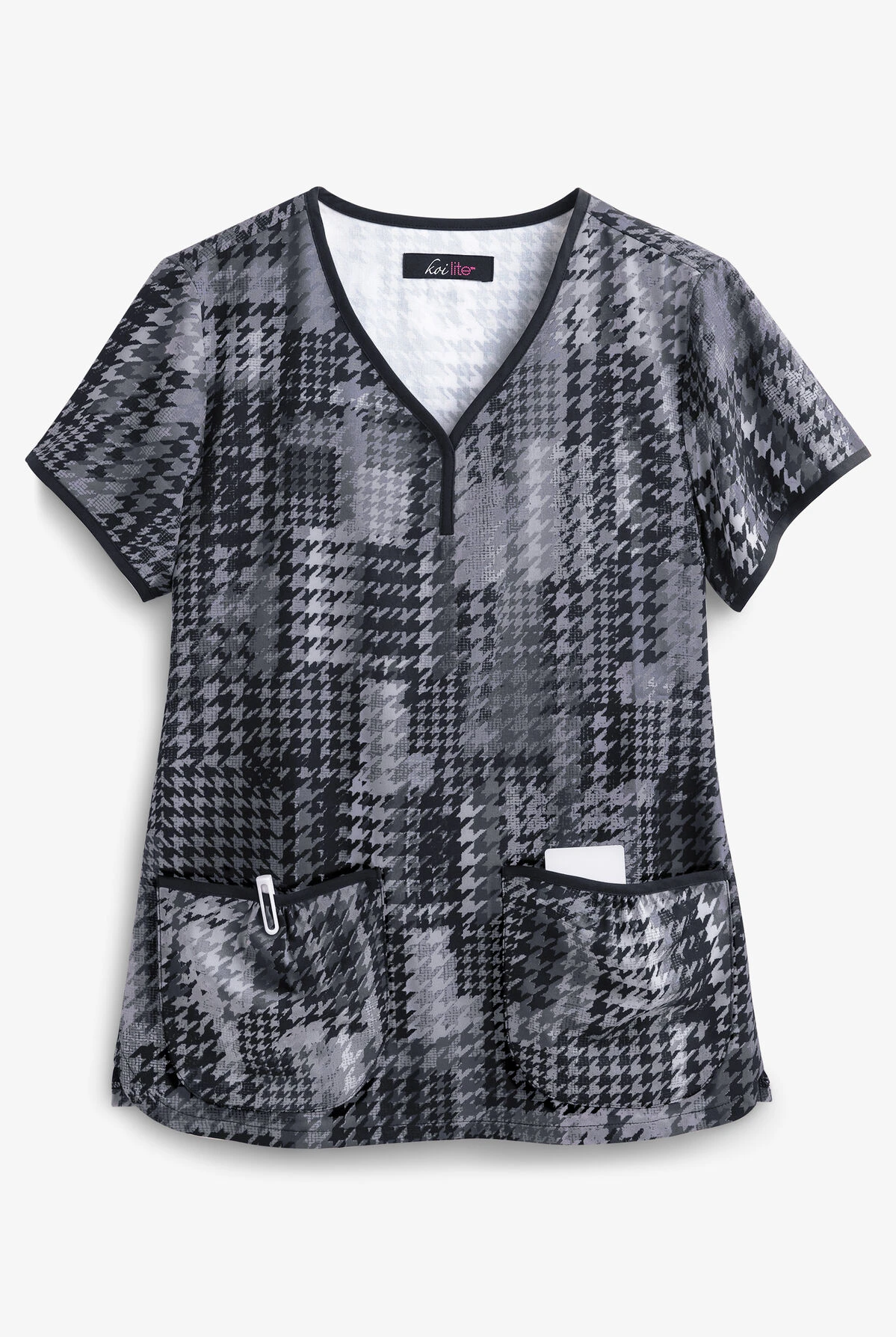 Koi Lite™ Houndstooth Platinum Eve Women’s 2-Pocket Y-Neck Print Scrub Top