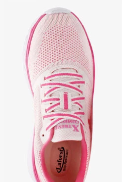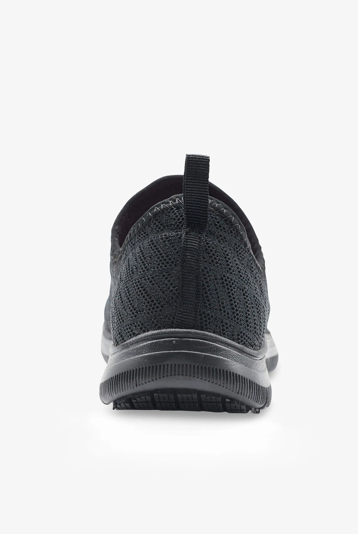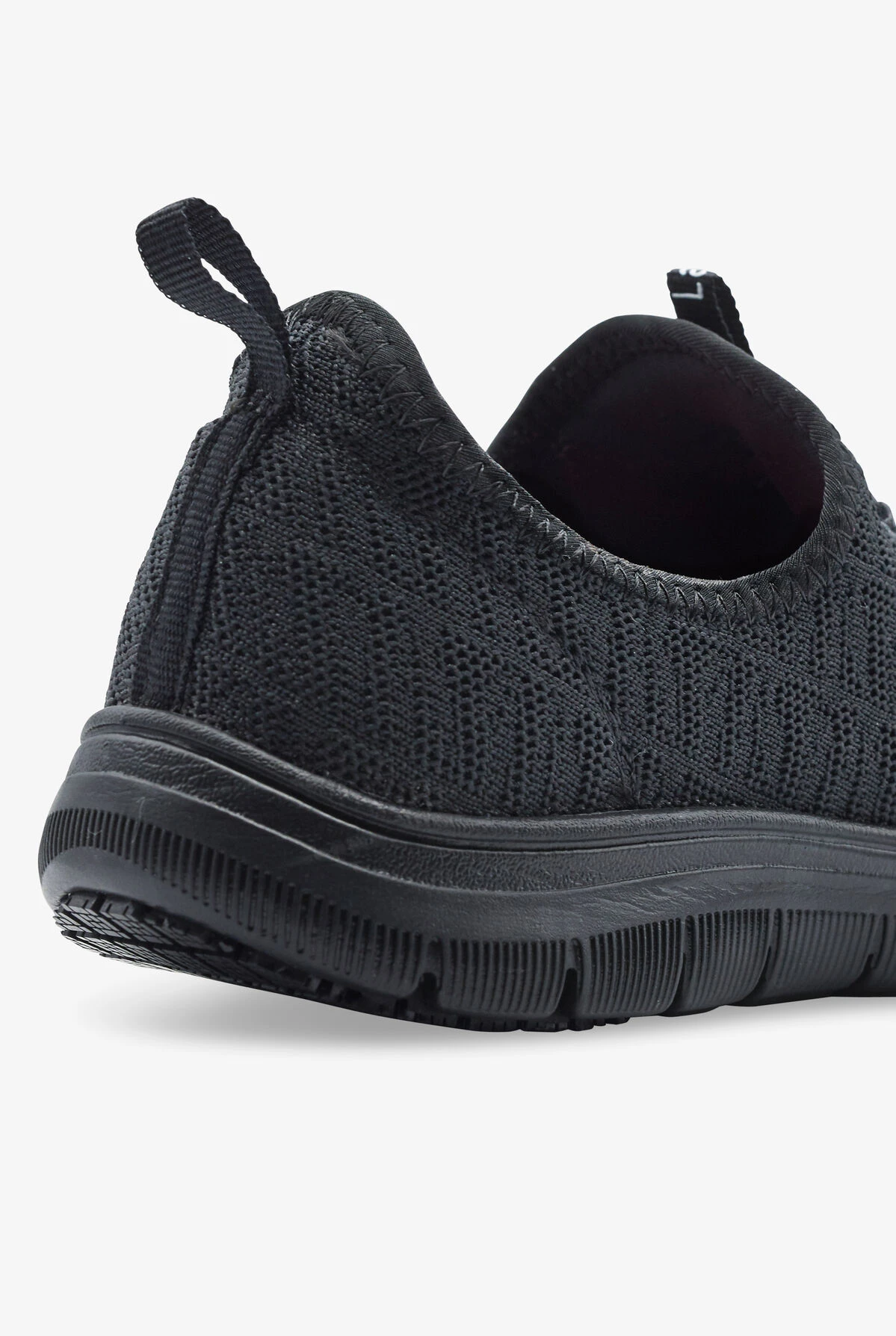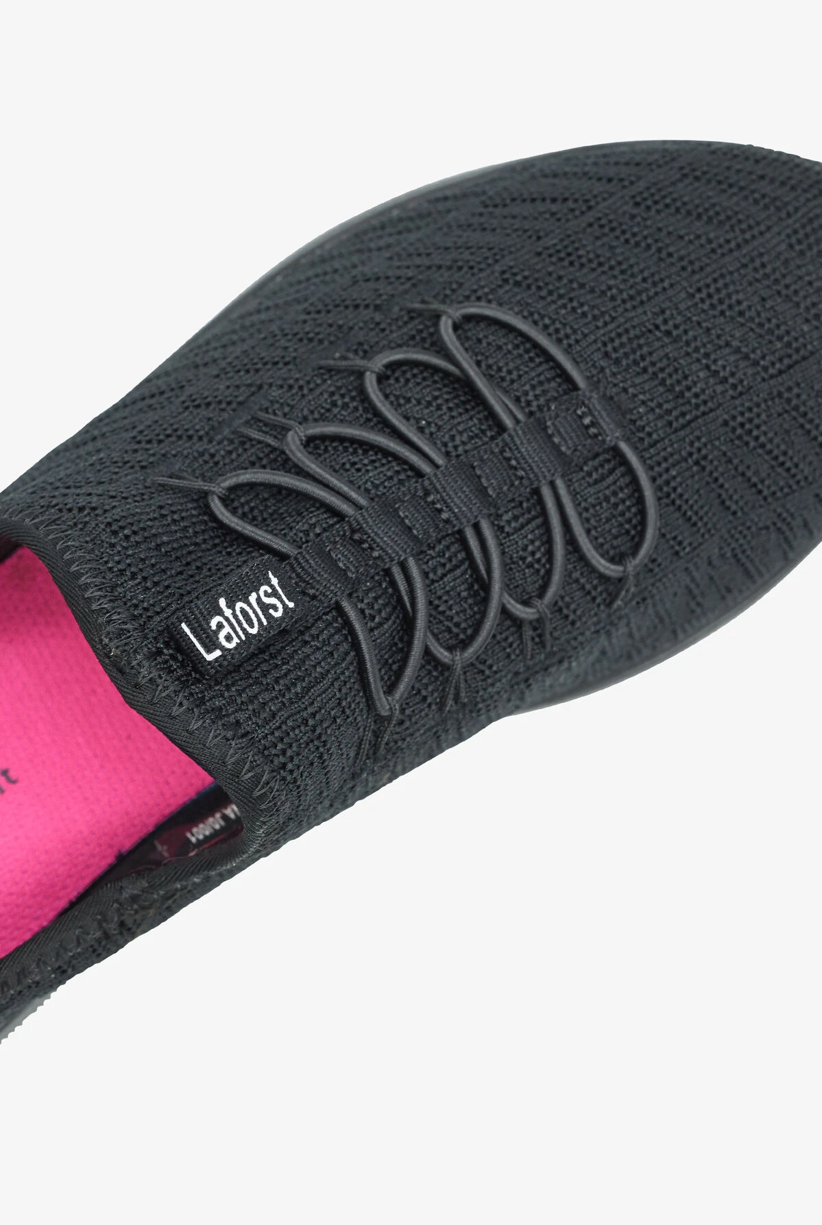 The Laforst Jewel 3155 01 Black Athletic Shoes feature a slip-on design with bungee laced front panel. These slip resistant shoes also feature a knit fabric upper and a pull tab for easy on and off. The cushioned comfort insole and flexible traction outsole provide extra stability and comfort. Heel height is 2″.
