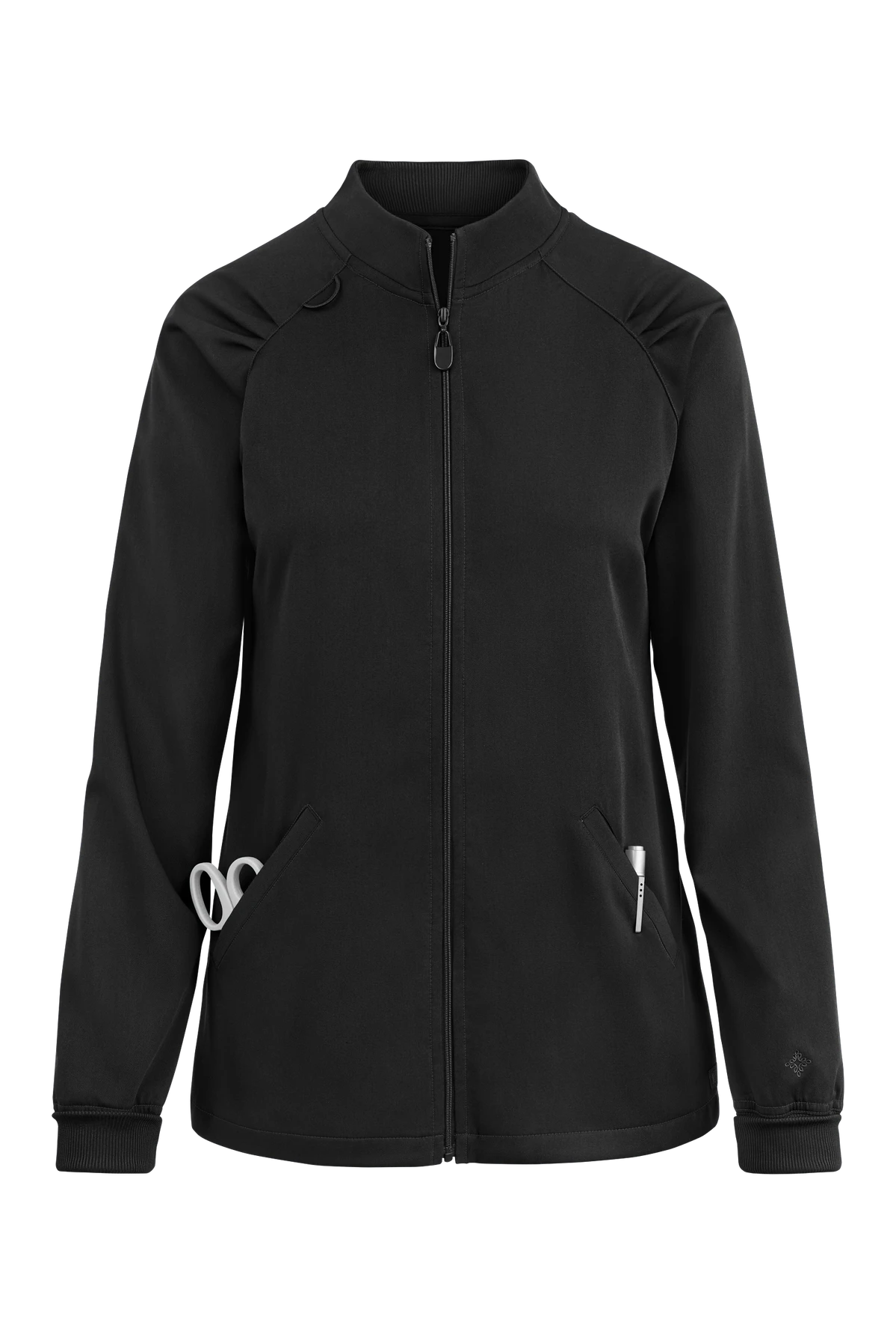 - Bungee ID badge loop on right shoulder
