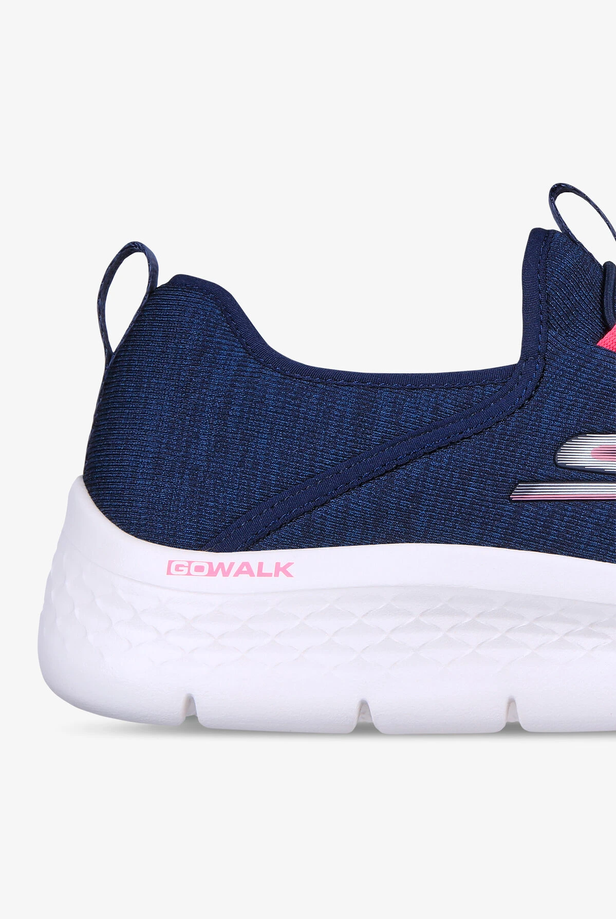 Skechers Performance Go Walk Flex Lucy Navy Athletic Pull On Shoes feel great from top to bottom. Classic style in breathable mesh. Shock absorbing Aircooled Goga Mat® insole, Comfort Pillar Technology® for added support. Cushiony midsole and dual-density traction rubber outsole for stability. Conscientiously crafted with 100% vegan materials.