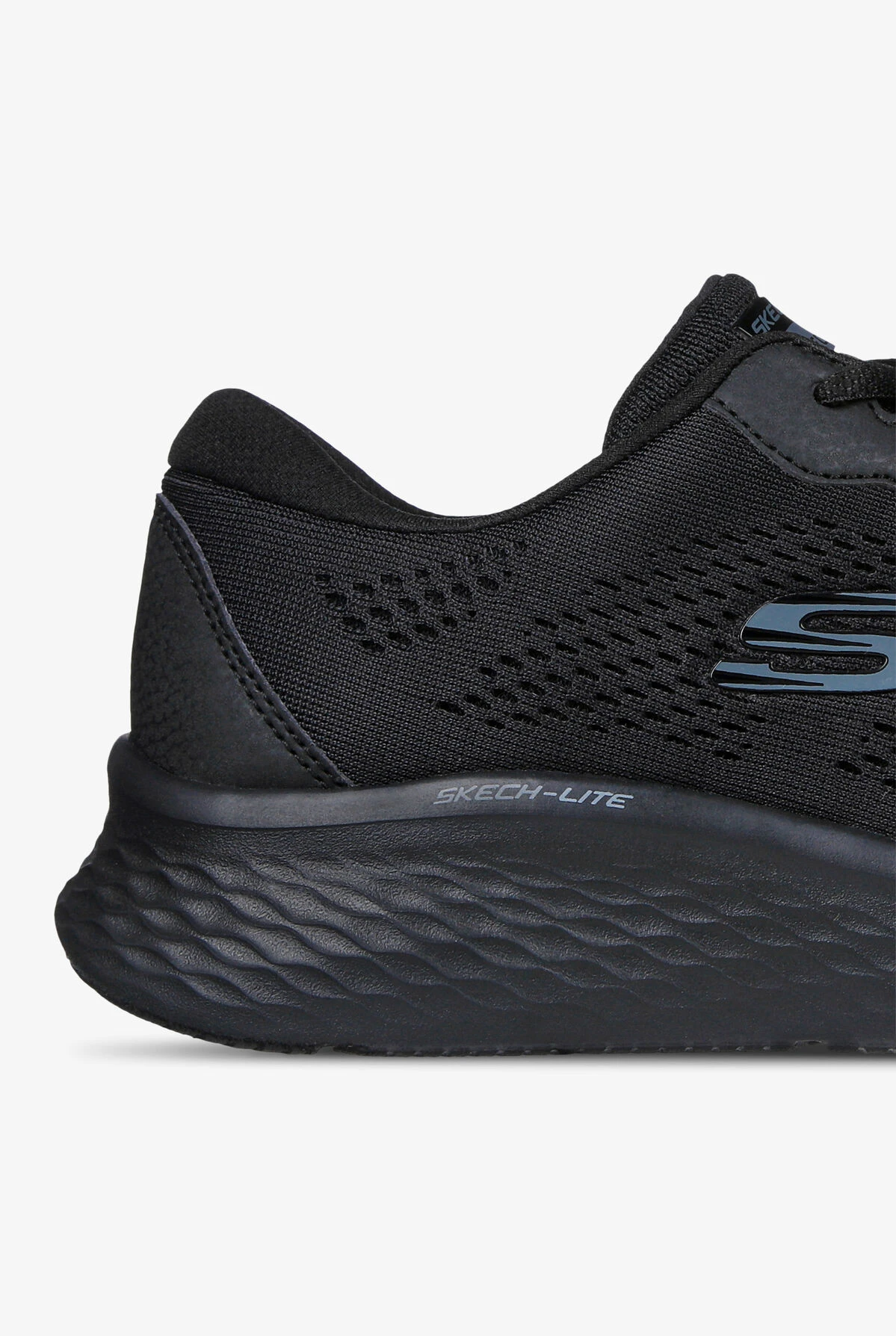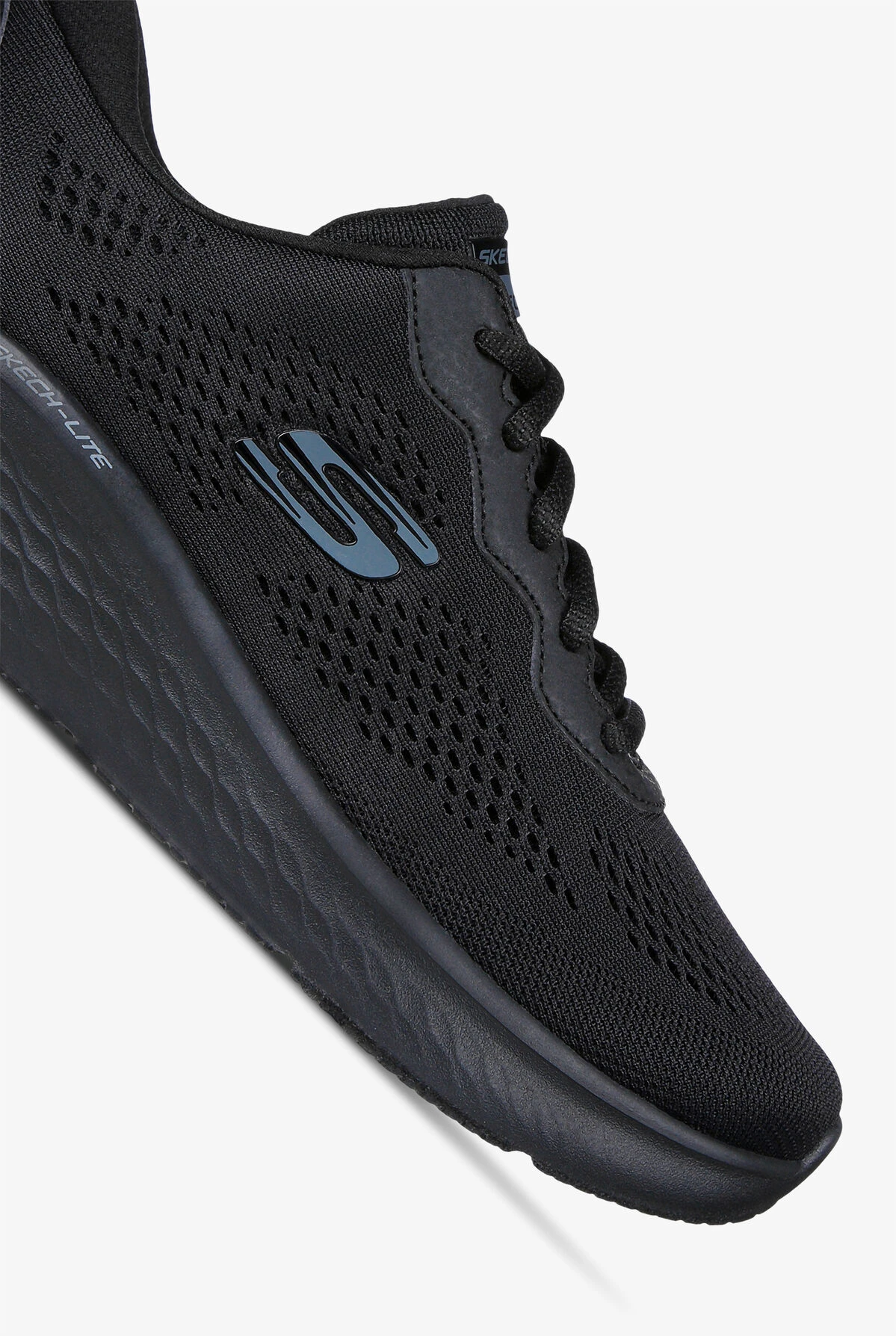 Skechers Sport Skech-Lite Pro Black Athletic Lace up Athletic Nursing Shoes feel great from top to bottom. Classic lace-up style in breathable mesh. Memory foam insole. Cushiony midsole, flexible rubber outsole. Conscientiously manufactured with 100% vegan materials. Solid Black mesh upper and Black midsole.
