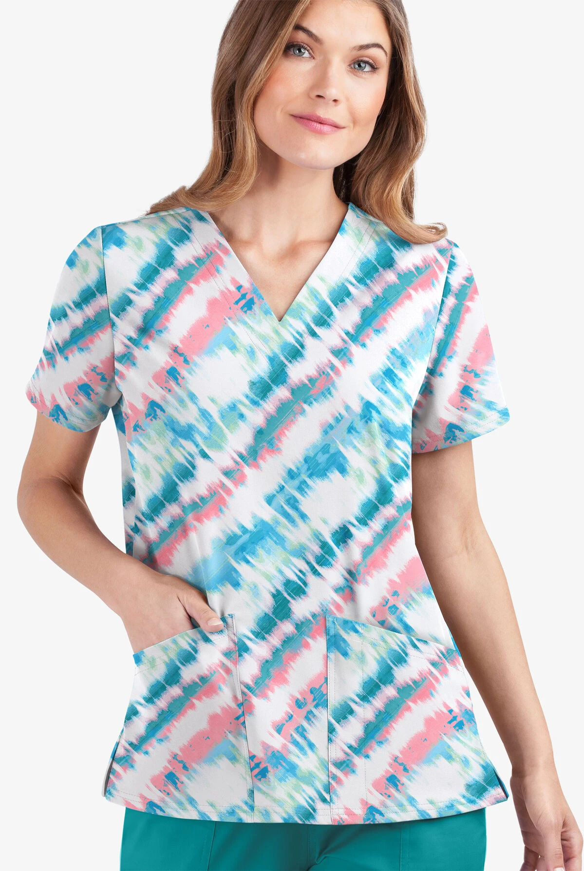 UA Butter-Soft STRETCH Belize Ikat Women’s 2-Pocket V-Neck Printed Scrub Top