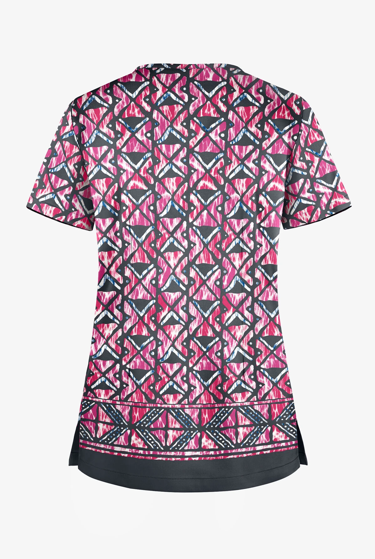 This UA Butter-soft Stretch day dance pewter women’s 1-pocket v-neck print scrub top features a relaxed classic fit and overlap detail. The back darts and bust darts provide a flattering fit. This top’s clean silhouette with single chest pocket makes it ideal for a tuck-in style. For your convenience, there is an id badge loop at the left shoulder. Made of 93/7 poly/spandex.