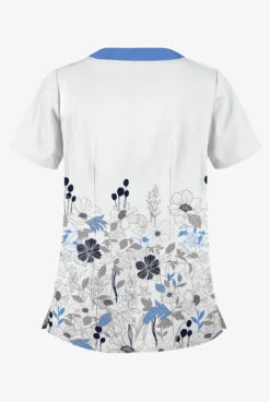 The UA River Floral Navy Women’s 4-Pocket Princess Seam Printed Scrub Top features a v-neckline and front yoke with Turquoise trim. Princess seams, back darts, and side slits create a flattering fit. This colorful scrub top has 2 double pockets to store all of your essentials. The fabric content is 55/45 cotton/poly.