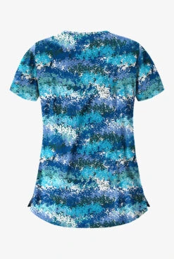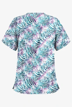 Butter-Soft Abstract Zebra Navy Women’s 2-Pocket V-Neck Print Scrub Top