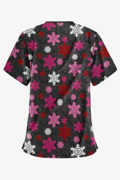 Butter-Soft Nordic Winter Navy Women’s 2-Pocket Relaxed Fit V-Neck Print Scrub Top