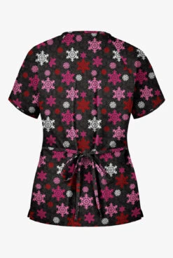 Butter-Soft Morning Snow Women’s 2-Pocket Mock Wrap Print Scrub Top