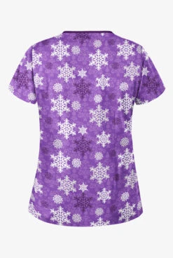 Butter-Soft Morning Snow Purple Glow Women’s 4-Pocket Princess Seam Print Scrub Top