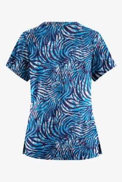 Butter-Soft Originals Abstract Zebra Turquoise Women’s 6-Pocket Scallop Neck Printed Scrub TopÂ