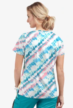 Butter-Soft STRETCH Tropical Mix & Belize Ikat Women’s 1-Pocket V-Neck Tuck-In Mixed Print Scrub Top