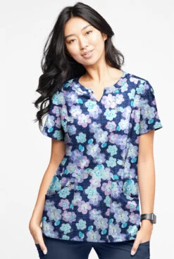 UA Butter-Soft STRETCH Blooms And Butterflies Navy Women’s 4-Pocket Notch-Neck Printed Scrub Top