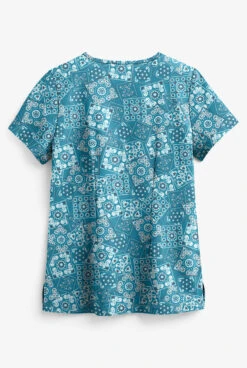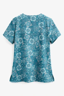 UA Butter-Soft STRETCH Bandana Paisley Harbor Blue Women’s 2-Pocket V-Neck Print Scrub Top