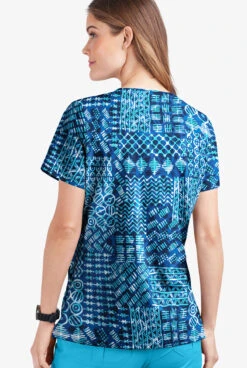 UA Butter-Soft STRETCH Chameleon Adventure Navy Women’s 4-Pocket Crisscross Printed Scrub Top