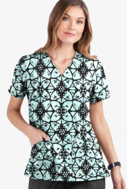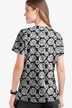 UA Butter-Soft STRETCH Desert Rose Black Printed Women’s 6-Pocket Peasant Style Scrub Top