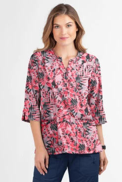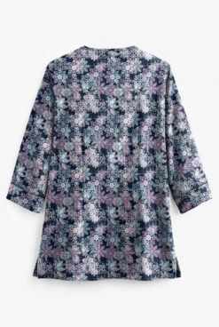 Butter-Soft Falling Snowflakes Light Thistle Women’s 4-Pocket 3/4th Sleeve Print Scrub Top