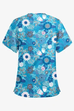 Butter-Soft Kiev Floral Turquoise Women’s 3-Pocket V-Neck Printed Scrub Top