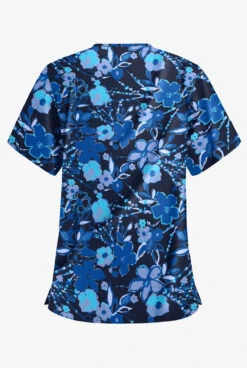 Butter-Soft London Floral Navy Women’s 3-Pocket V-Neck Print Scrub Top