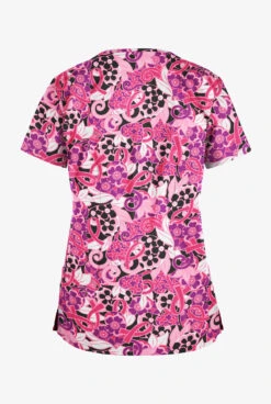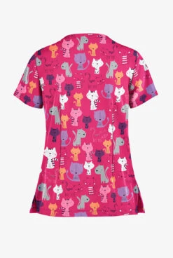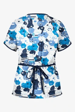 Butter-Soft Puzzle Cats Women’s 2-Pocket Mock Wrap Printed Scrub Top