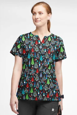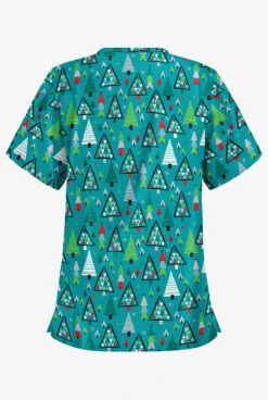 Butter-Soft X-Mas Park Women’s 4-Pocket V Notch-Neck Print Scrub Top