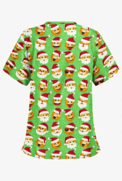 Butter-Soft X-Mas Emojis Grass Green Women’s 2-Pocket Relaxed Fit V-Neck Print Scrub Top