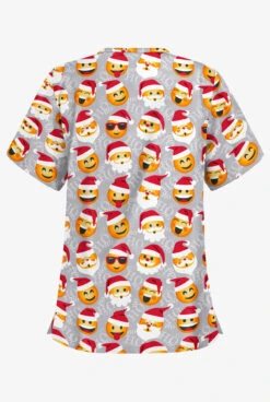 Butter-Soft X-Mas Emojis Silver Women’s 2-Pocket Relaxed Fit V-Neck Print Scrub Top