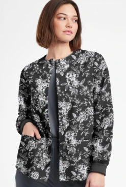Butter-Soft Originals Floral Splash Silver Women’s 4-Pocket Rounded V-Neck Printed Scrub Top