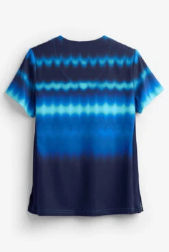 Koi Lite⢠Reform Wavy Ombre Blue Women’s 2-Pocket V-Neck Print Scrub Top