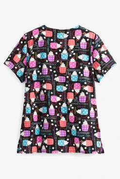 White Cross Sweet Chocolate Women’s 3-Pocket V-Neck Print Scrub Top