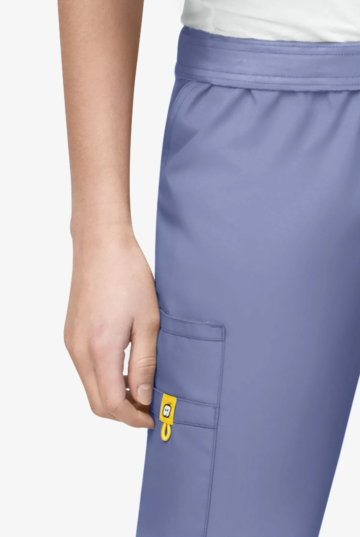 - 1 right cargo WonderWink signature triple pocket with yellow bungee ID loop